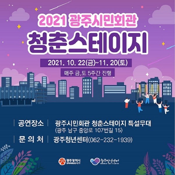 백희정 광주청년센터장은 “‘청춘 스테이지 in 시민회관’ 무대가 코로나19로 무대가 줄어든 문화·예술 분야 청년들에게 갈고 닦은 실력을 펼치는 자리가 되기를 바란다.”고 말했다.