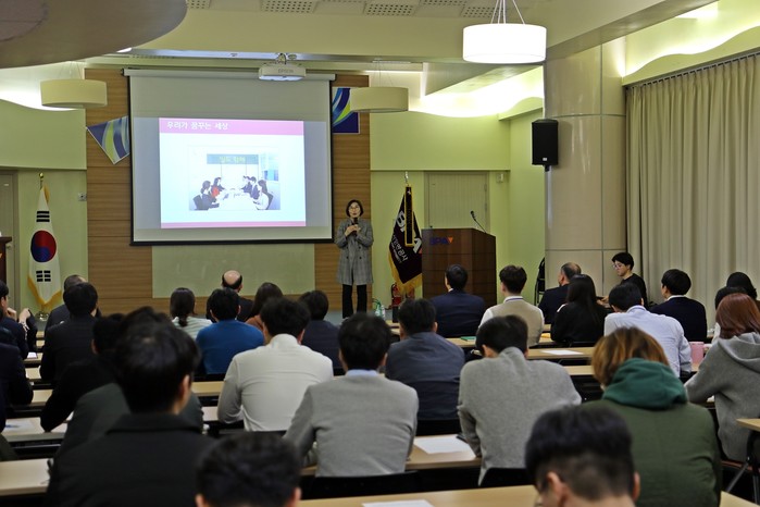 이날 워크숍은 먼저 양성평등진흥원의 추천을 받은 김형미 강사의 주제특강으로 시작됐다. 김 강사는 “조직 내 양성 간 공정한 기회 제공과 경쟁 가능한 조직문화의 구축이 곧 그 조직의 경쟁력 향상과 직결된다”면서 “ 이를 위해 실질적인 양성 간 평등 실현과 구성원들의 인식 개선이 필요하다”고 강조했다.