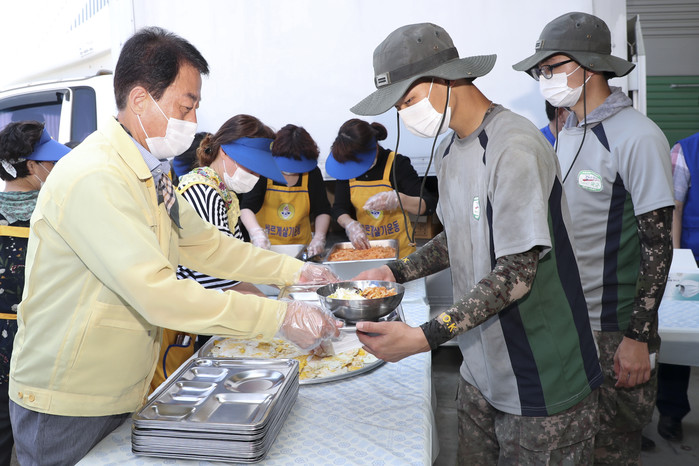 바르게살기운동 합천군협의회(회장 이태련과)는 바르게살기운동 경상남도협의회(회장 손창봉)와 함께 율곡 . 쌍책면 수해피해 복구 현장에서 봉사하는 군인 등 봉사자 6500여명을 위해서 8.18 ~ 8.19 2일간 비빔밥, 수박, 커피 등 급식 지원을 했다.