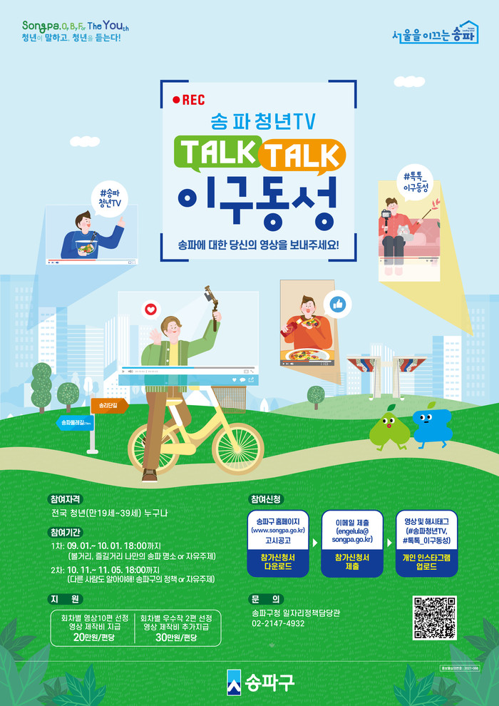 [시민일보 = 이대우 기자] 서울 송파구(구청장 박성수)가 송파청년TV ‘톡톡(TAlK TALK)! 이구동성(異口同聲)’ 이벤트를 진행한다.