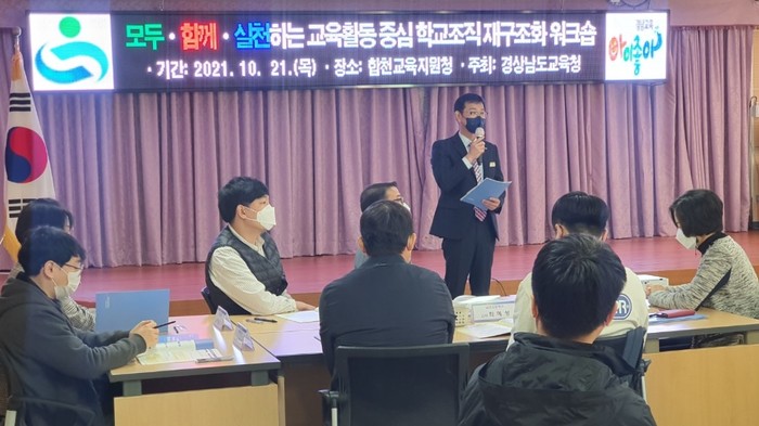 경상남도교육청(교육감 박종훈)은 10월 21일 합천, 거창을 시작으로 11월 26일 창원까지 총 27회에 걸쳐 지역별로 나누어 초등학교 교감 및 교사 1,000여 명을 대상으로 ‘모두.함께.실천하는 교육활동 중심 학교조직 재구조화 워크숍’을 개최한다.