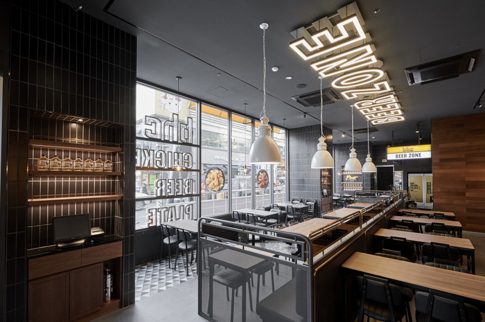 부천역점은 치킨과 맥주를 함께 즐길 수 있는 비어존으로, 감각적인 인테리어가 강점인 카페형 매장이다.