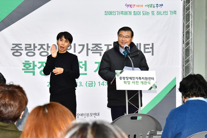 [시민일보 = 여영준 기자] 서울 중랑구(구청장 류경기)는 장애인가족의 복지 증진을 위해 마련한 중랑장애인가족지원센터를 신내동으로 확장 이전하고 최근 개관식을 개최했다고 16일 밝혔다.