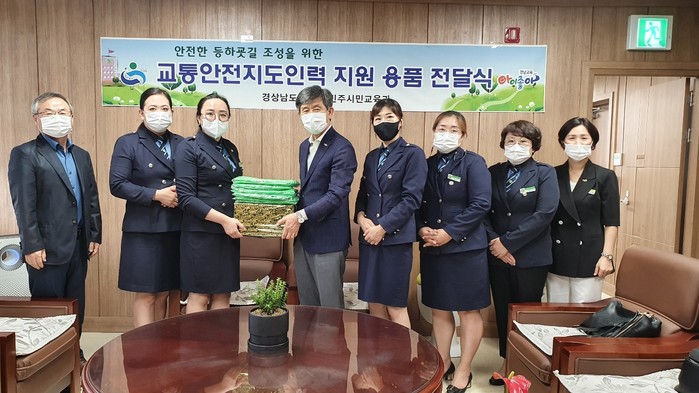경상남도교육청(교육감 박종훈)은 13일 도내 교통안전지도인력(녹색어머니회)에 비옷 800벌과 방역용품(손소독티슈) 8,200개를 배부한다.