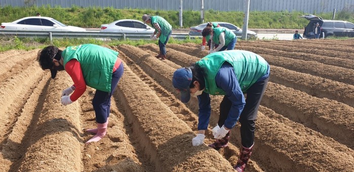 경기 여주시새마을회가 '쾌적하고 아름다운 여주시 만들기와 생명살림운동'의 일환으로 12일 가납읍, 정동면, 대신면 일대에 이산화탄소와 미세먼지 감축에 효과적인 친환경 작물 '케나프' 심기 운동을 추진했다. 사진은 작물을 파종하고 있는 모습. (사진제공=여주시청)