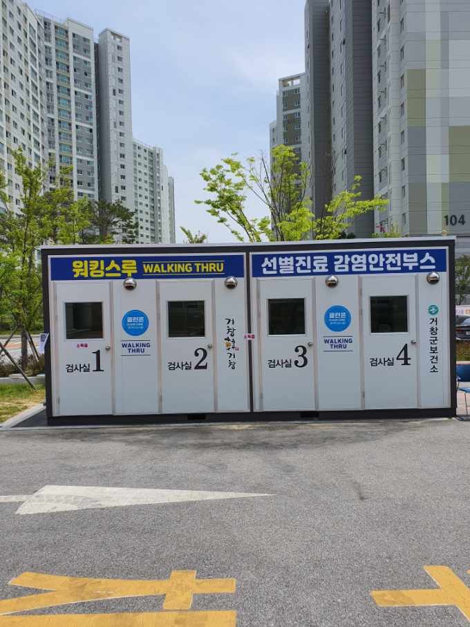 거창군은 코로나19가 장기화 될 것으로 예상되어 군민들이 신속하고 안전한 선별진료를 받고 의료진 2차 감염 최소화를 위해 지난 5월 29일부터 이동식 워킹스루(감염안전) 선별 진료소를 운영하고 있다.