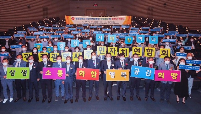 광주광역시 주민자치연합회는 5일 오후 광주시청 대회의실에서 이용섭 광주시장, 김용집 시의회 의장, 광주시주민자치연합회 임원, 관내 96개동 주민자치회장 및 주민자치위원장 등 100여 명이 참석한 가운데 출범식을 개최했다.