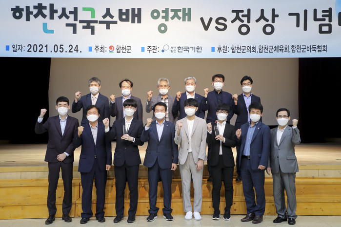 한국기원이 주최하고 합천군(군수 문준희)과 합천군바둑협회가 후원하는 제9회 하찬석 국수배 영재 VS 정상 기념대국이 24일 합천 문화예술회관에서 열렸다.