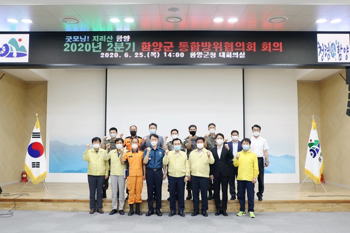 함양군 통합방위협의회(의장 서춘수 함양군수)는 25일 오후 2시 함양군청 대회의실에서 관내 주요 기관·단체장이 참석한 가운데 ‘2020년 2분기 함양군 통합방위협의회 회의’를 개최했다.