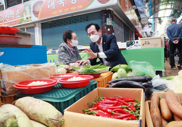 이날 전통시장을 찾은 서 군수는 코로나19의 장기화로 인한 어려움과 정부 재난지원금을 지원받지 못하는 상인들의 건의사항 등 상인들과 소비자들의 현장 목소리를 청취하고 노고를 위로하는 등 민생행보를 펼쳤다.