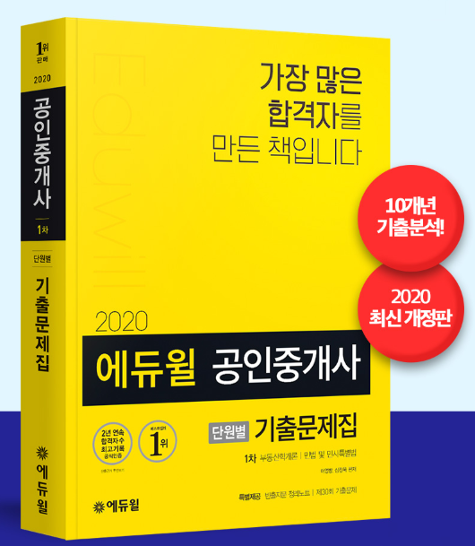 온라인서점 YES24에 따르면, 7월 3주차 공인중개사 부문 베스트셀러 1위는 ‘2020 에듀윌 공인중개사 단원별 기출문제집 1차’ 교재가 차지했다.