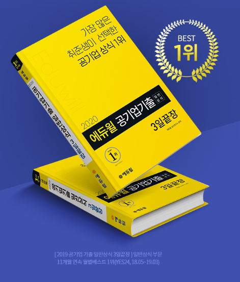 [시민일보 = 여영준 기자] 에듀윌(대표 박명규)이 발간한 ‘2020 에듀윌 공기업 기출 일반상식 3일끝장’ 수험서가 온라인서점 예스24의 기능직 10급 부문 6월 1주차 베스트셀러 1위를 달성했다.