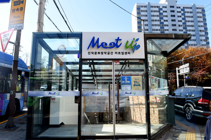 총사업비 5억원이 소요된 연면적 612㎡ 규모의 미트업 센터는 그동안 방치돼 있던 월계2동 우체국 옆 인덕 지하보도를 활용한 것으로 지하공간의 특성을 살려 '밑에서 만나 성장하다'라는 의미를 담고 있다.