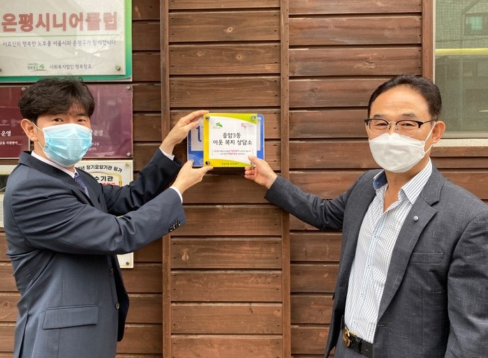 서울 은평구 응암3동이 최근 코로나19로 어려움을 겪고 있는 복지사각지대를 발굴·지원하기 위해 지역내 은평시니어클럽 등 15곳에 이웃 복지상담소를 문 열고 현판식 및 업무협약을 체결했다. 사진은 관계자들이 복지상담소 현판식을 진행한 후 기념촬영을 하는 모습. (사진제공=은평구청)