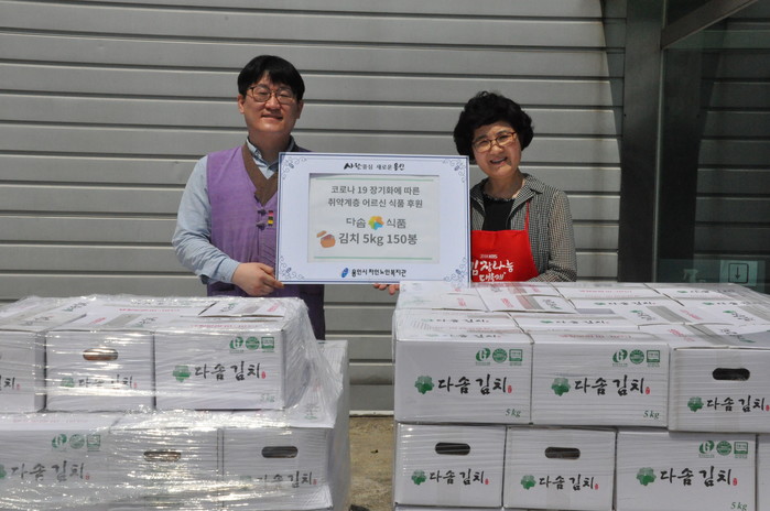 다솜식품 윤연숙 부사장은 “모두가 힘든 시기 이지만, 코로나-19로 더 어려운 시기를 보내시는 어르신들의 상황에 도움이 되고자 김치를 후원하게 되었다.