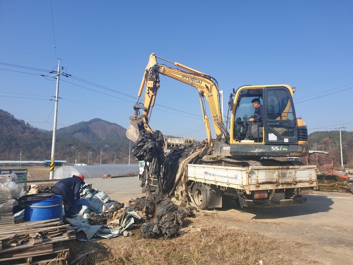 전남 곡성군 오산면이 최근까지 불법 매립·소각 처리되는 폐비닐 수거활동을 전개해 총 15톤의 폐비닐을 수거했다. 오산면은 한 해 농사를 마무리할 때마다 제대로 처리되지 않는 폐비닐로 몸살을 앓아왔다. 사진은 폐비닐을 수거하는 모습. (사진제공=곡성군청)