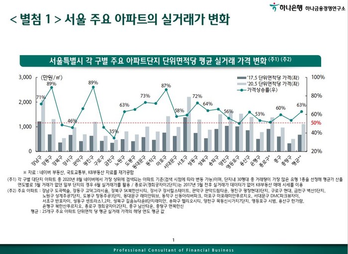 반면 다주택자는 사상 최고 수준의 신탁과 증여를 기록하며 대조를 이루었다. 또 지난 3년간 서울 아파트의 평균 실거래 가격이 한국감정원 기준 45.5% 상승했으나, 같은 기간 서울시 각 구별 주요 인기 아파트의 가격은 대부분 50~80% 상승해 평균과 큰 차이를 보였다.