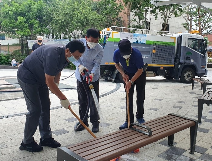 이날 조 의원은 수유일공원에 반려동물과 비둘기 배설물로 인한 악취, 그리고 벌레와 모기가 많다는 민원을 접수해 즉시 살수차를 투입해 청소와 해충 방역 소독을 했다.