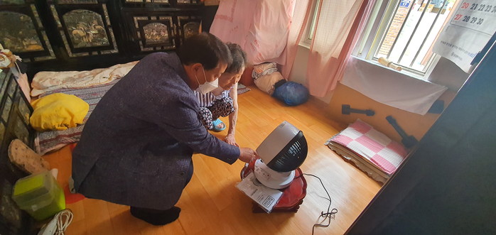 경기 하남시 덕풍3동 지역사회보장협의체는 최근 홀몸노인 등 4가구에 겨우내 사용한 침구류 등을 세탁·건조해 전달하는 이불빨래 봉사와 함께 냉방기구 없이 열악한 주거환경에서 거주하는 취약계층 10가구를 선정해 써큘레이터를 지원했다. 사진은 대상 노인에게 써큘레이터 사용법을 설명해주고 있는 모습. (사진제공=하남시청)