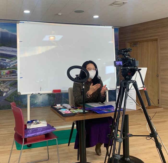 경기 수원시 영통구 광교1동은 2일 온라인 비대면 문화센터 프로그램 첫 강의를 성공적으로 진행했다. 광교1동은 온라인 진행이 용이한 우리그림민화, 규방공예, 요가, 영어회화, 중국어회화 등 총 6개 강좌를 온라인 비대면 주민센터 교육 프로그램을 시범운영한다. 사진은 온라인 수업이 진행되고 있는 모습. (사진제공=영통구청)