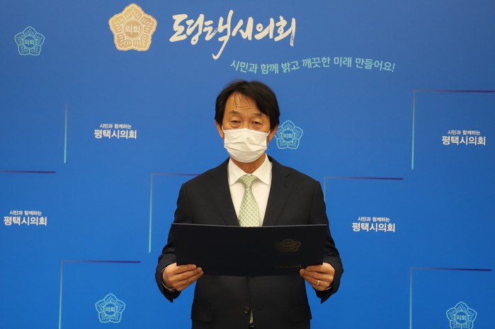 [평택=오왕석 기자] 평택시의회(의장 홍선의)는 지난 4일 시의회 3층 간담회장에서 ‘코로나19 확산 방지를 위한 호소문’을 발표했다.