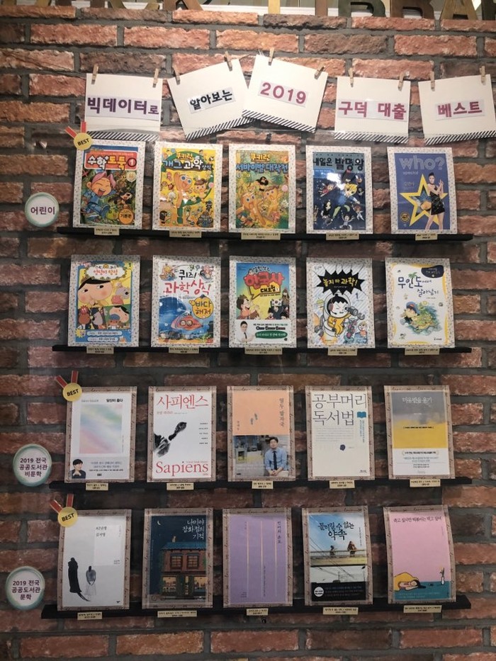 이 전시회는 지난 한 해 구덕도서관에서 최다 대출을 기록한 문학, 비문학, 어린이 등 3개 부문별 상위 10위까지 도서 총 30권과 2019년 전국 공공도서관의 인기 대출도서 10권을 포함 총 40여 권의 도서를 전시한다.
