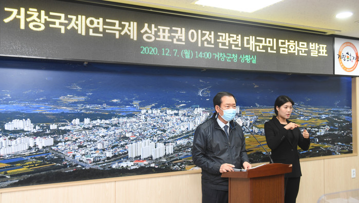 [거창=이영수 기자]거창군은 7일 군청 상황실에서 거창국제연극제 상표권 이전 관련 대군민 담화문을 발표했다.