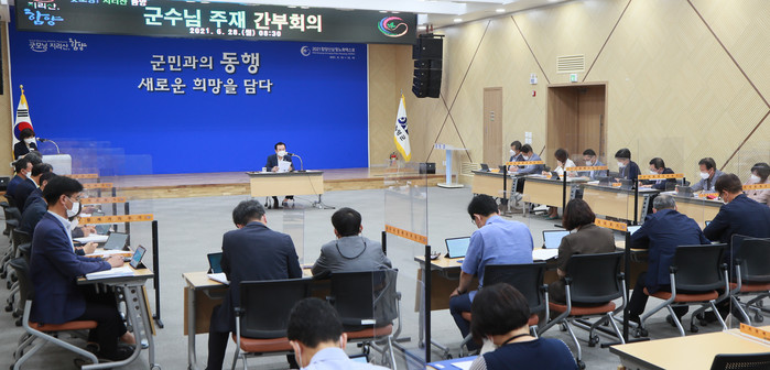 함양군은 6월 28일 오전 서춘수 군수 주재로 간부회의를 개최하고 각 부서별 추진할 중요 현안사업에 대해 보고하고 원활한 사업 추진을 위한 각 부서의 협조를 이끌어 냈다.