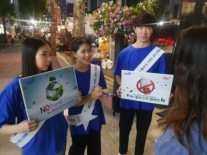 [시민일보 = 고수현 기자] bhc치킨 '해바라기 봉사단'이 최근 열린 '2019 제5회 서리풀 페스티벌'에 자원봉사자로 참여해 축제를 찾은 시민들을 대상으로 플라스틱 사용의 위험성을 알리는 'No 플라스틱 캠페인'을 펼쳤다.
