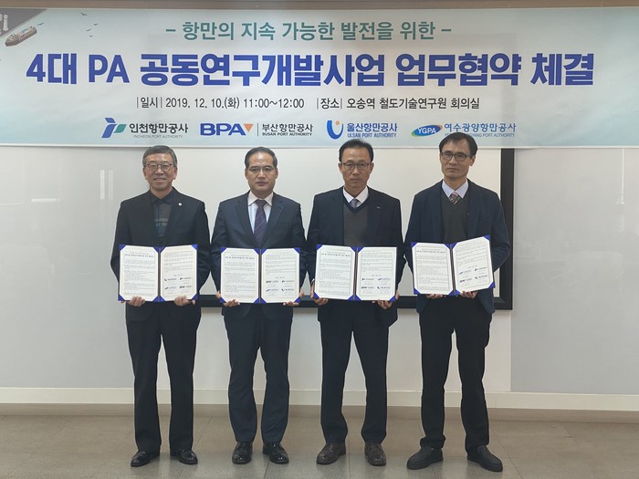 부산항만공사(BPA, 사장 남기찬)는 지난 10일 4대 항만공사(부산항만공사, 인천항만공사, 울산항만공사, 여수광양항만공사)간 ‘항만의 지속 가능한 발전을 위한 4대 항만공사 공동연구개발 사업 추진 협약’을 체결했다고 11일 밝혔다.