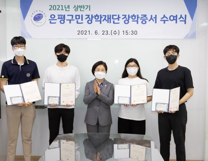 [시민일보 = 이대우 기자] 재단법인 서울 은평구민장학재단이 은평구청장실에서 ‘2021년 상반기 은평구민장학생 장학증서 수여식’을 열었다.