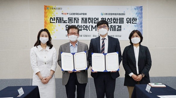 근로자지원프로그램(EAP, Employees Assistance Program) 전문기관인 (사)한국EAP협회는 산재노동자에 대한 맞춤형 서비스와 일자리 지원 환경 활성화에 필요한 제반 사항을 상호 협력하고자 청-장년층의 취업과 고용안정을 위한 전문 고용서비스를 운영하고 있는 ㈜굿잡취업지원센터와 업무 협약(MOU)을 체결했다.
