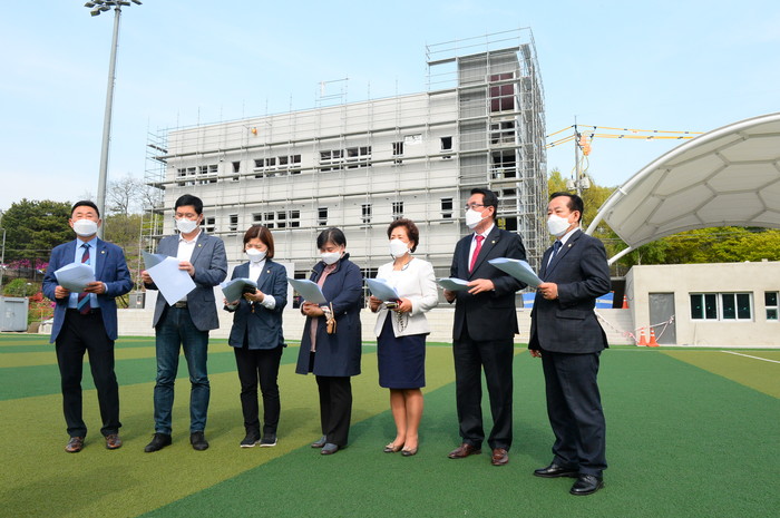 구의회 행정재경위원회 위원들은 현장 곳곳을 둘러보며 공사 진척 상황을 보고받고 최종 개선 사항에 대해 질의했다. 특히 구민의 편의가 가장 우선인 만큼 관람석과 생활체육시설 내 구민 이용 공간에 대한 질의응답이 이어졌다.
