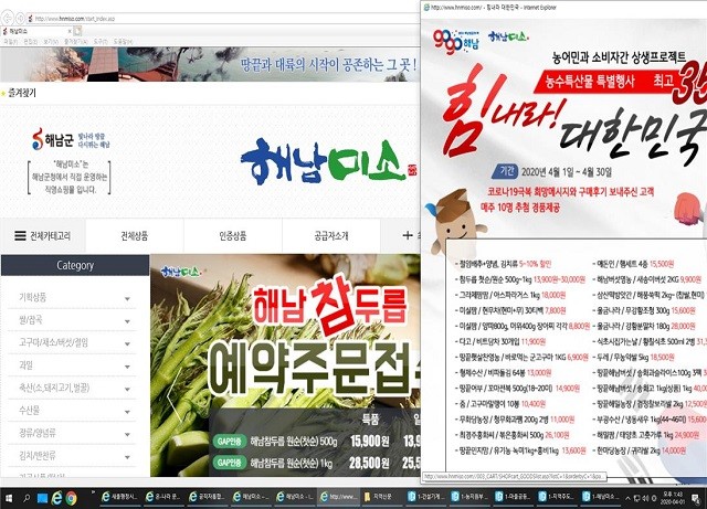 또한 4월 한 달 간 해남미소 쇼핑몰과 카카오톡 쇼핑몰에서 농수산물을 구매한 후 코로나19 극복 희망메시지를 보내준 고객과 구매후기를 올려주신 고객 중 추첨을 통해 다양한 경품도 제공할 계획이다.