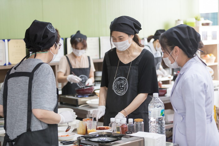 서울 양천구사회적경제지원센터가 최근 ‘케어푸드 생활관리’ 과정을 통해 식생활 소양교육과 어린이식단, 암환자식단 조리 실습을 진행했다. 사진은 센터 수강생이 강사의 지도에 따라 암환자 케어푸드를 만들고 있는 모습. (사진제공=양천구청)