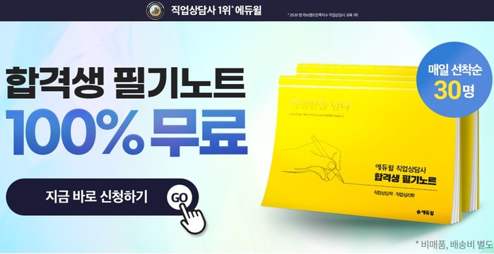 직업상담사 합격생 필기노트는 지난 1일 이후 신규 가입한 회원을 대상으로 이달 말일까지 매일 선착순 30명에게 무료로 제공된다.