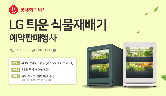 [시민일보 = 홍덕표 기자] 롯데하이마트가 15일부터 오는 31일까지 'LG틔운'(tiiun) 식물재배기 사전예약 행사를 개최한다.