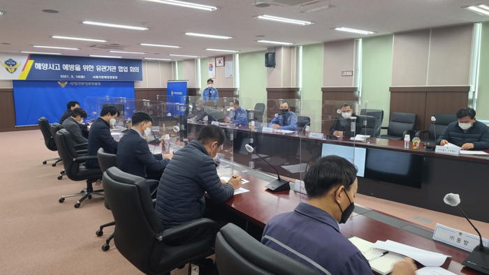 서해지방해양경찰청(청장 정봉훈)이 해양사고 예방을 위한 유관기관 협업회의를 16일 서해청 대회의실에서 개최했다.