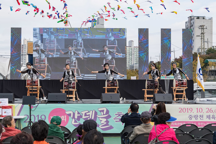서울 광진구가 지난 26일 중랑천 체육공원에서 ‘제7회 간뎃골축제’를 개최했다. 간뎃골축제추진위원회가 주최하는 이번 축제는 중곡동 지역주민의 화합과 소통을 도모하고 공동체 의식을 함양하기 위해 마련됐다. 사진은 주민들이 공연을 선보이는 모습. (사진제공=광진구청)