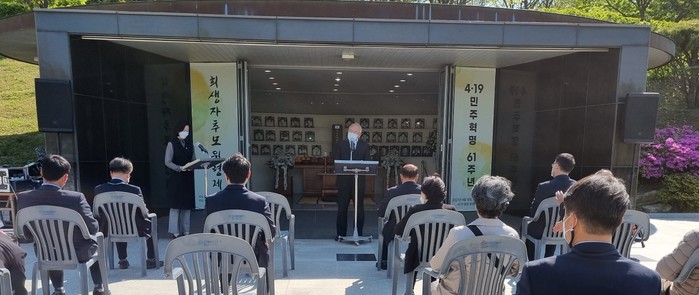 부산지방보훈청(청장 권율정)은 지나누 18일 오후 3시 부산민주공원 입구 4·19혁명 희생자 영령 봉안소 에서 ‘4·19혁명 61주년 희생자 추모위령제’ 를 개최했다고 밝혔다.