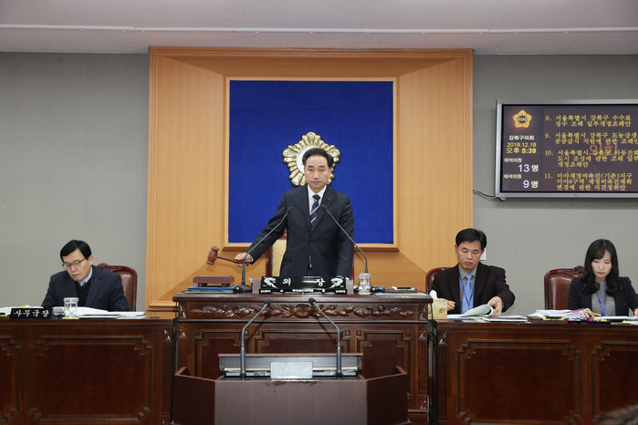 [시민일보 = 홍덕표 기자] 서울 강북구의회(의장 이백균)가 최근 3차 본회의를 끝으로 총 18일간의 일정으로 진행된 제230회 제2차 정례회를 폐회했다.