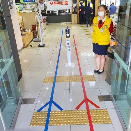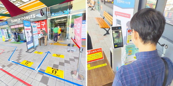 현재 사회적 안전거리 강화 차원으로 휴게소 입·출구에 전담 인력을 확대해 방문고객들의 마스크 착용과 출입명부작성을 확인하고 있으며 비대면 체온측정기를 통해 출입 인원에 대해 효율적으로 통제하는 모습이다.