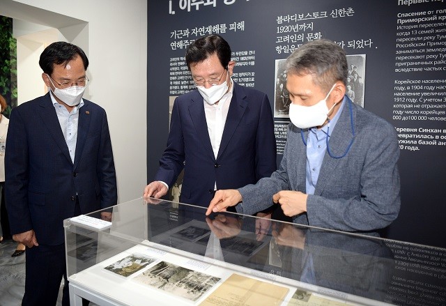 [광주=정찬남 기자] 이용섭 광주광역시장은 30일 오후 봉오동전투 영웅 홍범도 장군 특별전시회가 열리고 있는 광산구 월곡고려인문화관을 찾아 전시품을 관람했다.