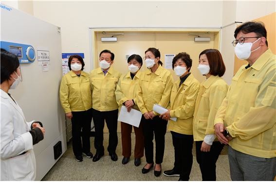 이날 의원들은 보건소장과 안전건설교통국장, 도시안전과장에게 예방접종센터 운영현황에 대해 설명을 들은 뒤 백신 보관실과 무정전 전원장치 등 관련 시설과 장비를 살펴봤다. 이어 예진진료실, 예방접종실, 이상반응 대기실 등을 순차적으로 돌며 현장근무자들의 고충과 구민들의 불편 사항을 청취하고 의견을 나눴다.
