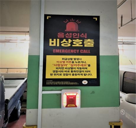 | ▲ 배봉 공영주차장에 설치된 음성인식 비상벨 모습. (사진제공=동대문구청) |