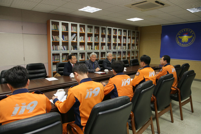 한편 이날 회의에서 강 서장은 전통시장 화재 예방을 위한 예산지원과 요양병원 등 노인시설 신규 허가시 지상 1층 또는 단일건물에 설치하고 2층 이상의 경우 외부 피난경사로 설치나 비상용 엘리베이터 설치를 의무화하는 조례 제정을 건의했으며, 부천소방서 보유 소방장비 설명과 기념촬영으로 마무리 됐다.