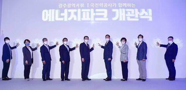 광주광역시와 한국전력공사는 28일 이용섭 광주시장, 정승일 한국전력공사 사장, 김용집 광주시의회 의장, 이유진 탄소중립위원회 위원, 서대석 서구청장 등 25명이 참석한 가운데 에너지밸리 상생 협력 사업으로 공동 추진한 상무시민공원 내 에너지파크 개관식을 개최했다.