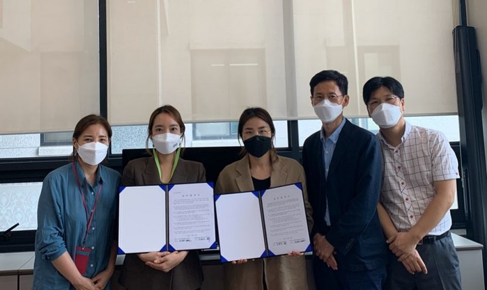 경기 광주시 남부 무한돌봄행복나눔센터가 9일 사회적기업 농업회사법인 한국비엘(주)과 지역내 복지사각지대 발굴 및 정기후원을 위한 업무협약을 체결했다. 협약에 따라 한국비엘은 복지사각지대 발굴 및 취약계층에게 과일 농축음료를 매월 40가구(40만원 상당)에게 지원한다. 사진은 관계자들이 기념촬영 하는 모습. (사진제공=광주시청)