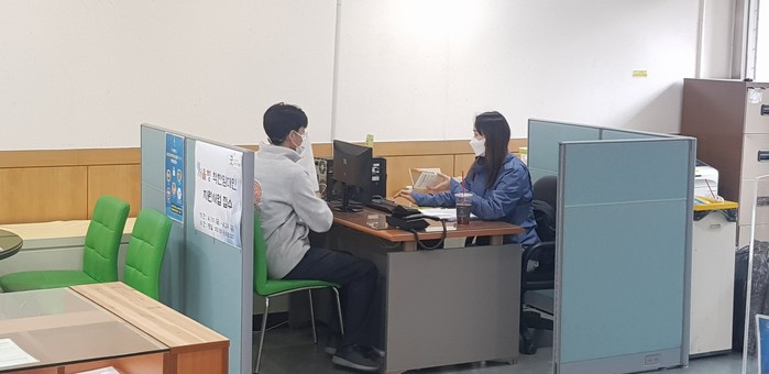 | ▲ 지난 4월 추진됐던 ‘서울형 착한 임대인 지원사업’ 접수 모습.(사진제공=광진구청) |
