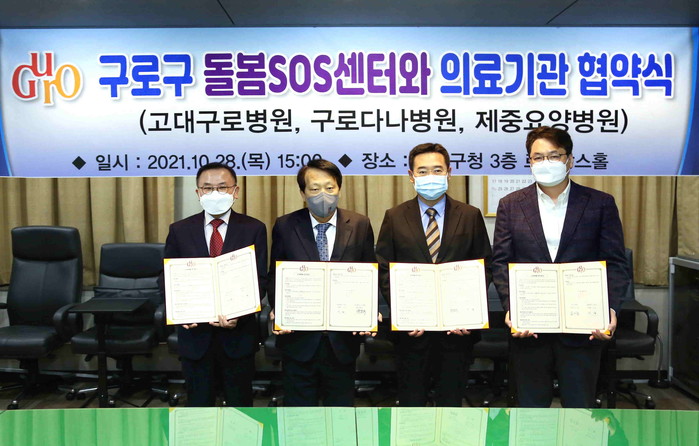 1일 구에 따르면 이번에 협약을 체결한 병원은 고대구로병원, 구로다나병원, 서남병원, 오케이요양병원, 제중요양병원 5곳으로, 협약에 따라 앞으로 협약 병원에 입원한 구민들은 동주민센터를 따로 방문하지 않고도 퇴원 전 필요한 돌봄SOS센터 서비스를 협약의료기관에서 바로 신청할 수 있다.